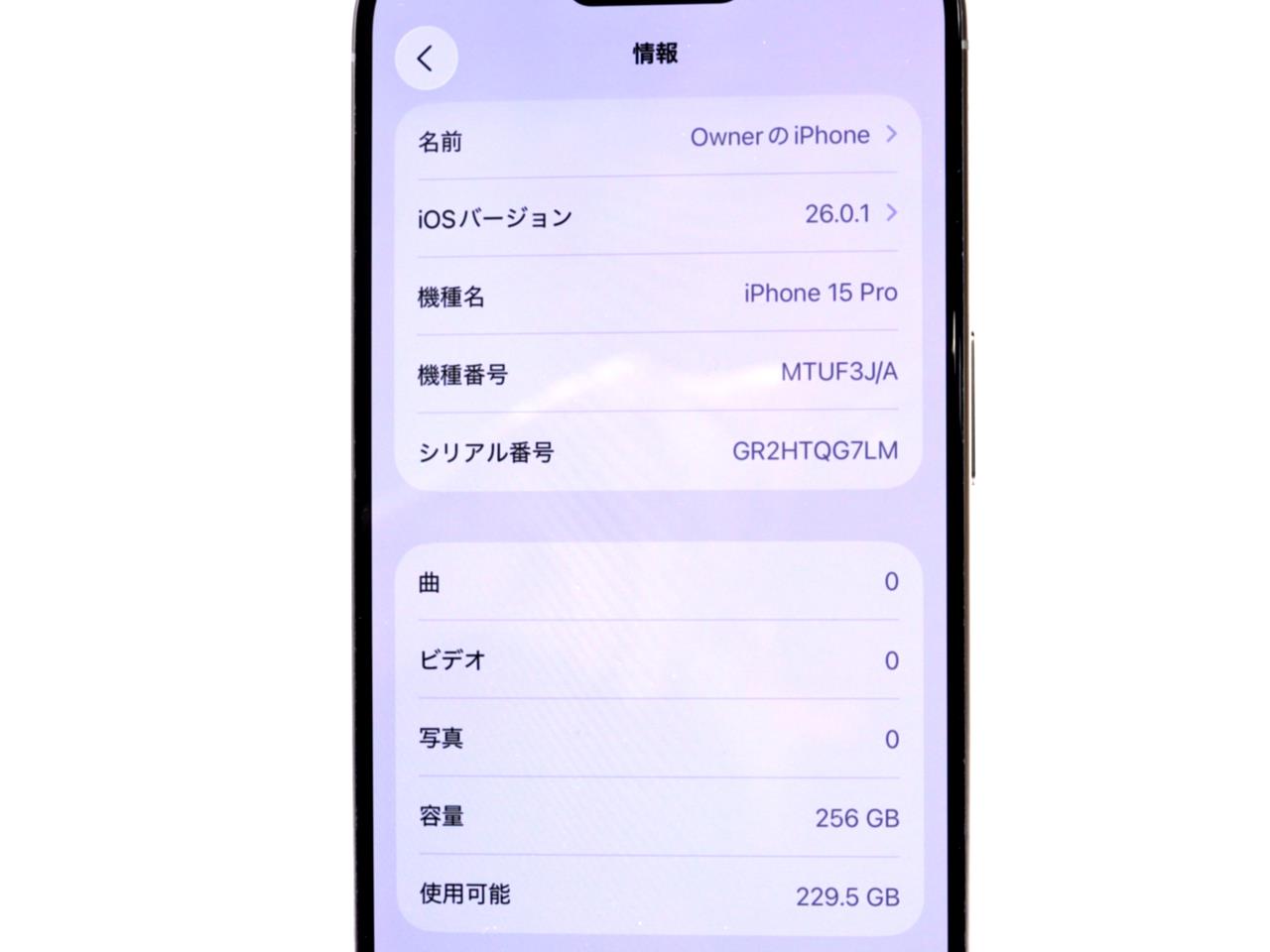APPLE [USED]u059036 iPhone15 Pro 256GB SIMフリー [ナチュラルチタニウム] の 商品仕様1: