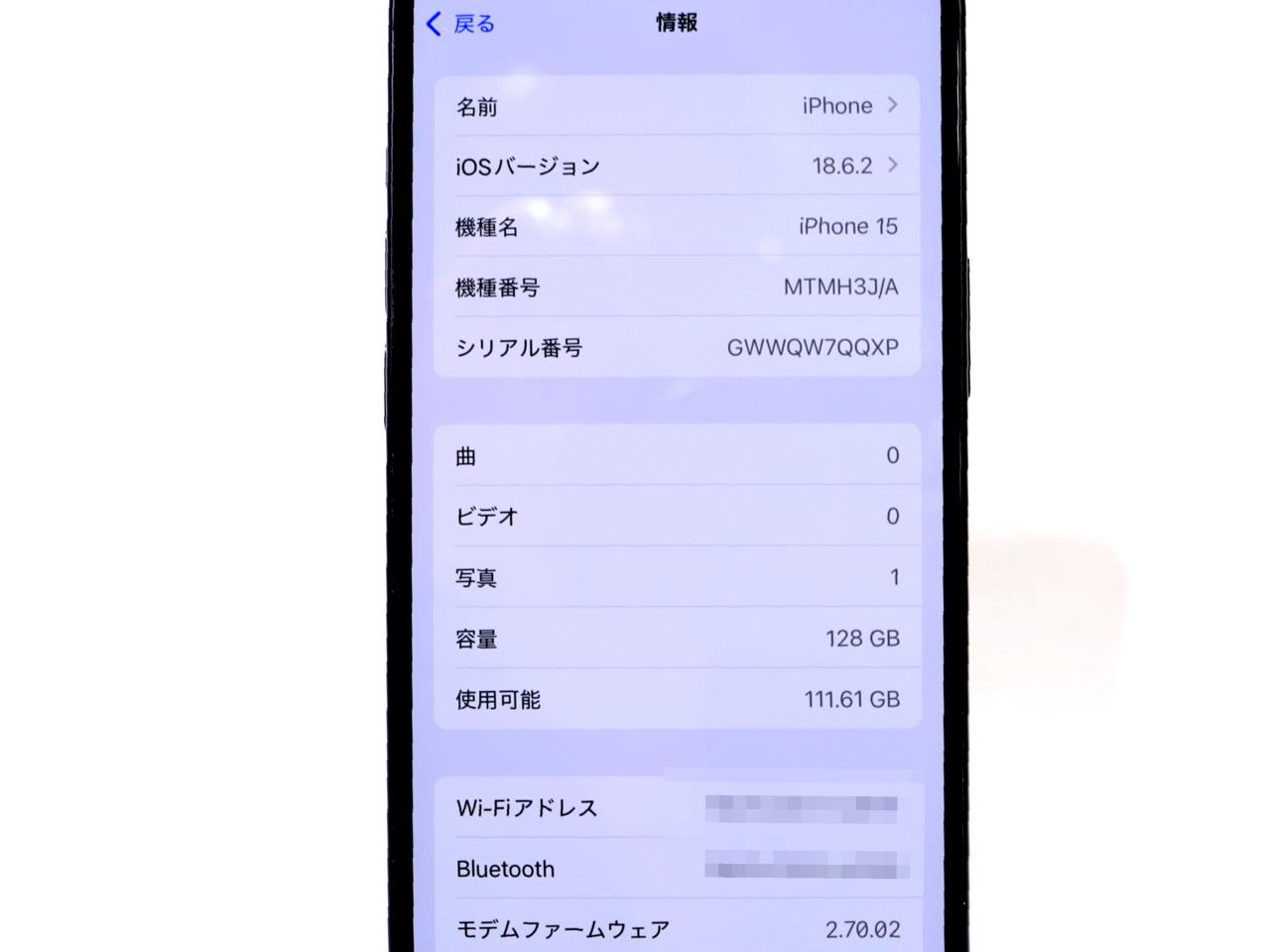 APPLE [USED]u059045 iPhone15 128GB SIMフリー [ブラック] の 商品仕様1: