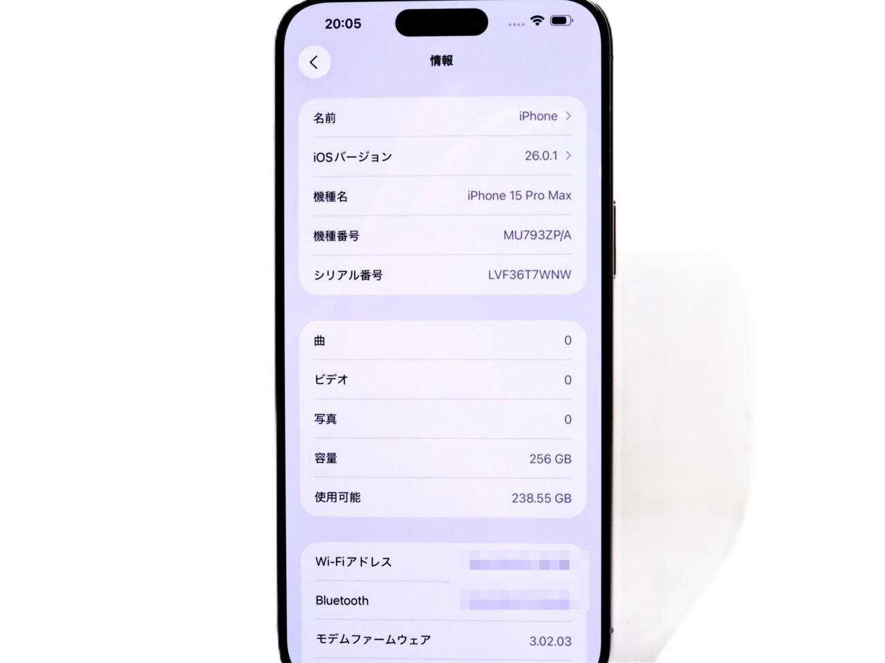 APPLE [USED]u059056 iPhone15 Pro Max 256GB SIMフリー [ナチュラルチタニウム] の 商品仕様1: