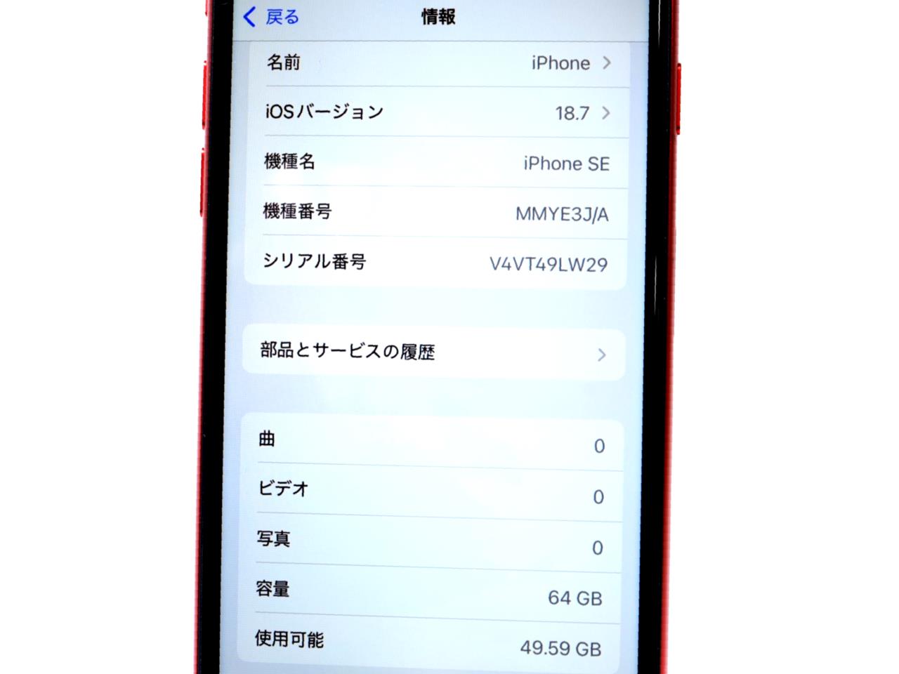 APPLE [USED]u059063 iPhone SE (第3世代) 64GB [レッド] の 商品仕様1: