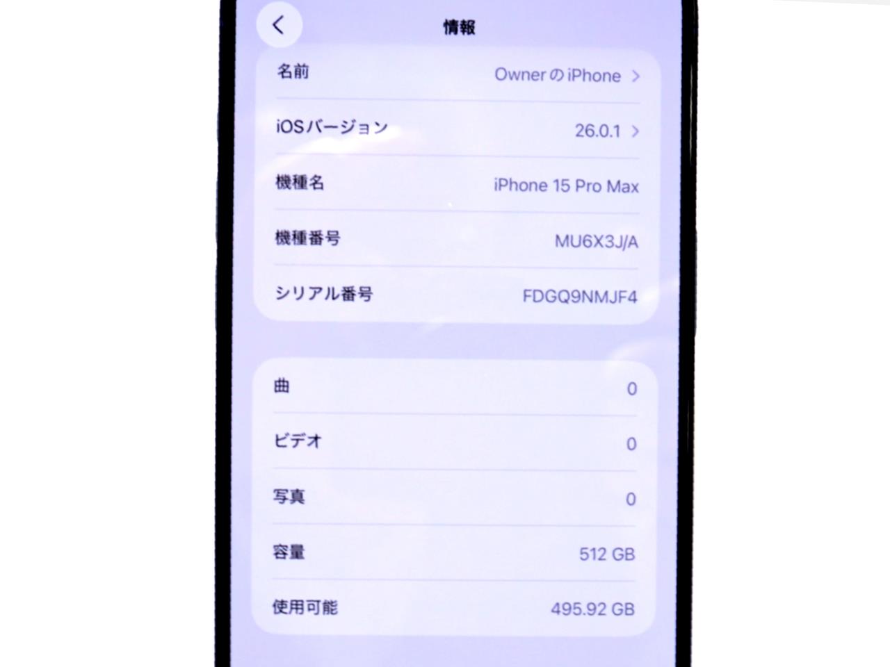 APPLE [USED]u059070 iPhone15 Pro Max 512GB SIMフリー [ブルーチタニウム] の 商品仕様1: