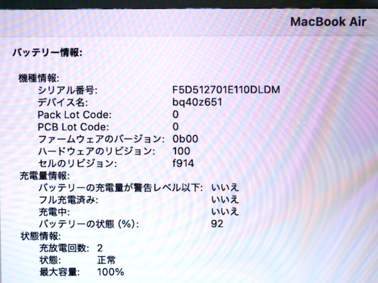 APPLE [USED]u059074 MacBook Air MC7X4J/A の 商品仕様1: