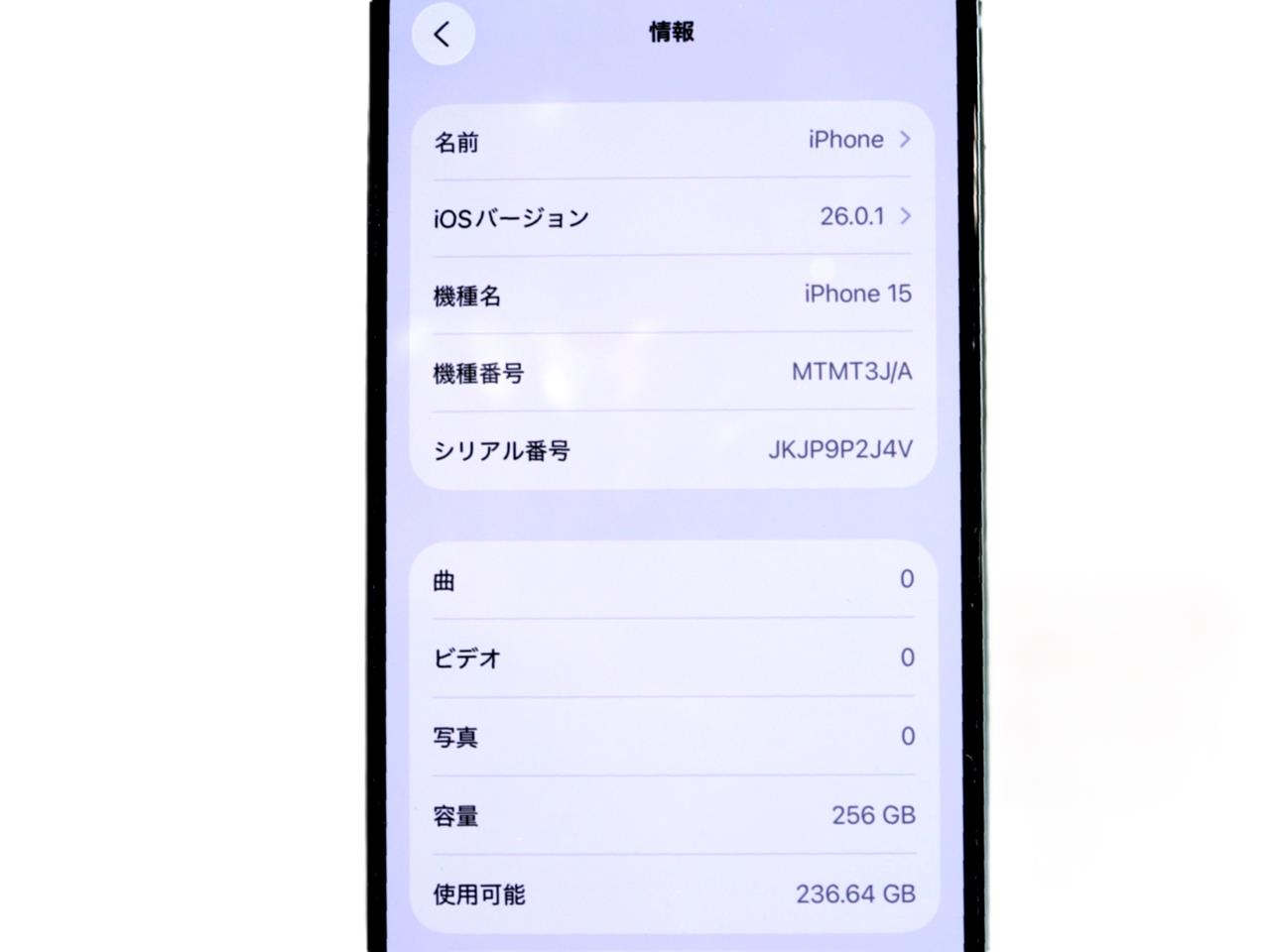 APPLE [USED]u059080 iPhone15 256GB SIMフリー [グリーン] の 商品仕様1:
