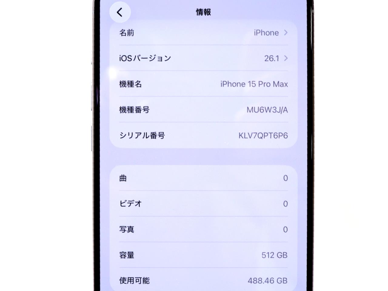APPLE [USED]u059096 iPhone15 Pro Max 512GB SIMフリー [ホワイトチタニウム] の 商品仕様1: