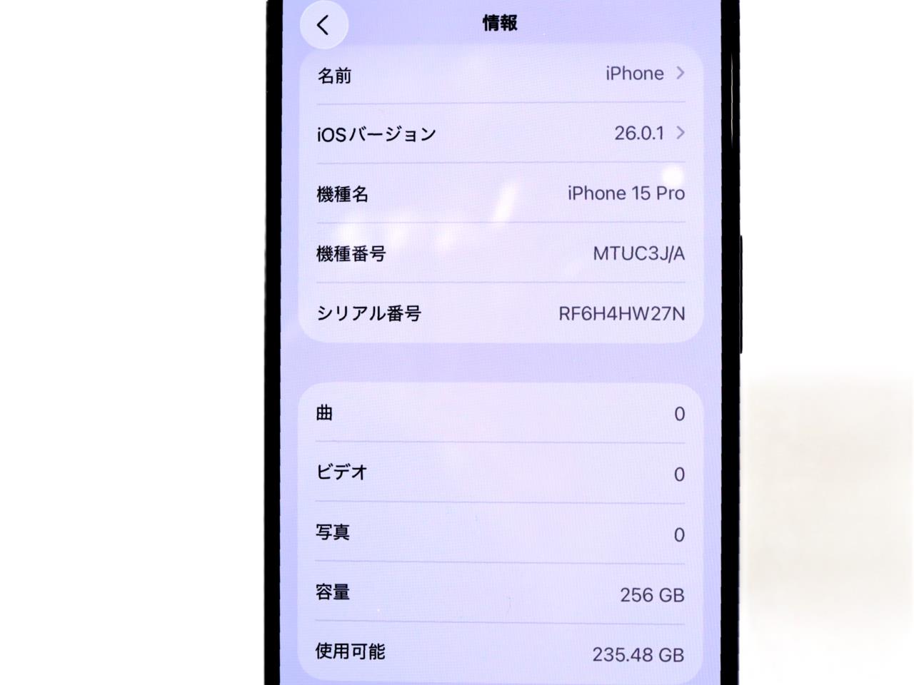 APPLE [USED]u059097 iPhone15 Pro 256GB SIMフリー [ブラック] の 商品仕様1: