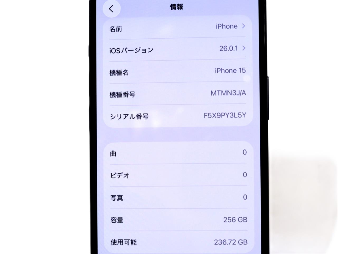 APPLE [USED]u059098 iPhone15 256GB SIMフリー [ブラック] の 商品仕様1: