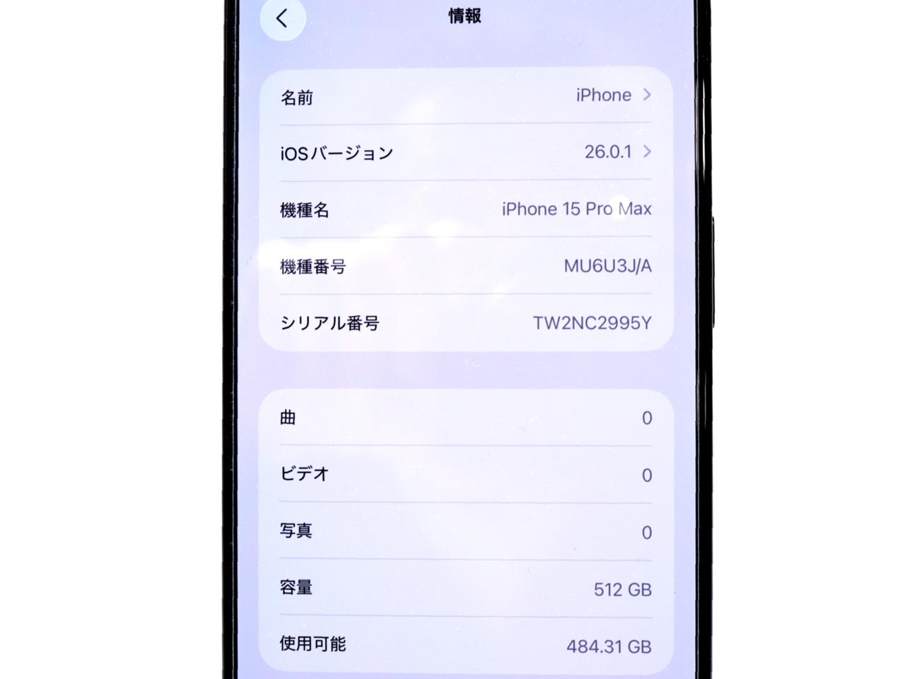 APPLE [USED]u059149 iPhone15 Pro Max 512GB SIMフリー [ブラックチタニウム] の 商品仕様1:
