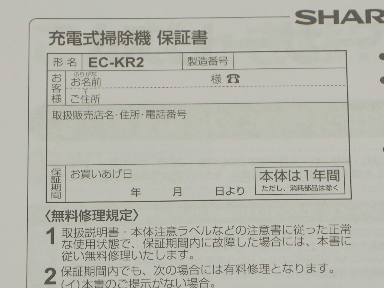 SHARP [USED]u059194 EC-KR2-B の 商品仕様1: