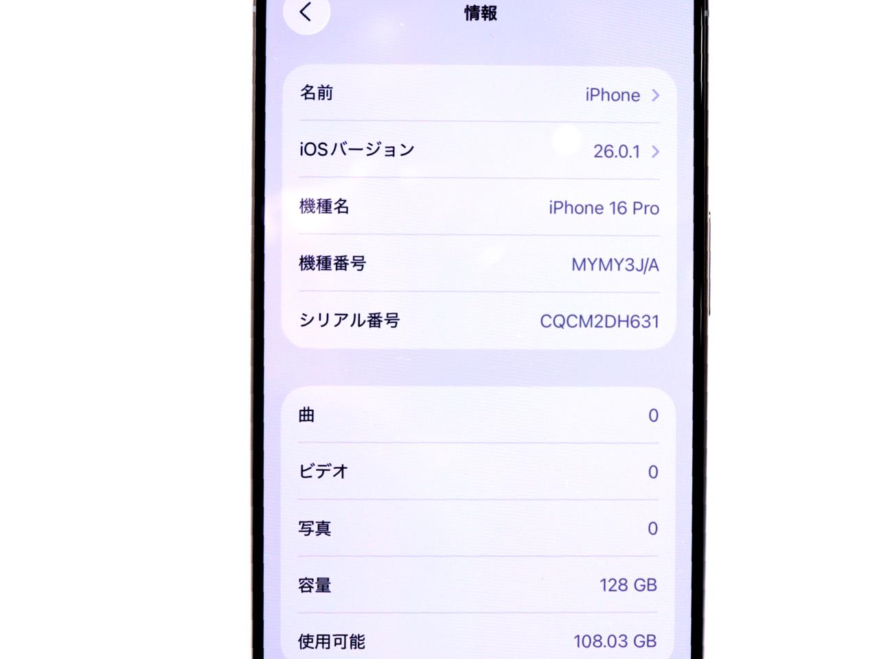 - [USED]u059199 iPhone16 Pro 128GB SIMフリー [ナチュラルチタニウム]