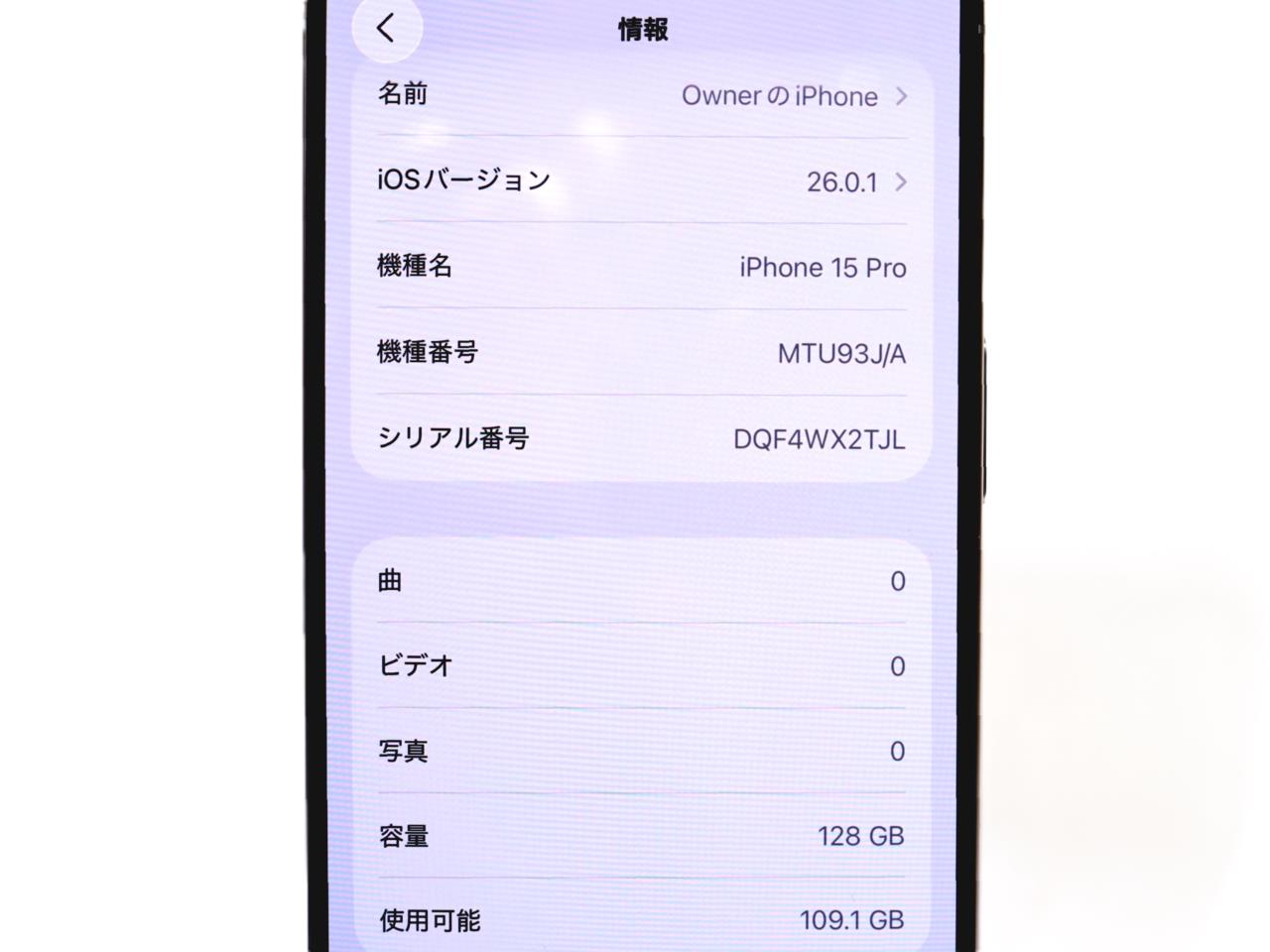 APPLE [USED]u059201 iPhone15 Pro 128GB SIMフリー [ナチュラルチタニウム] の 商品仕様1: