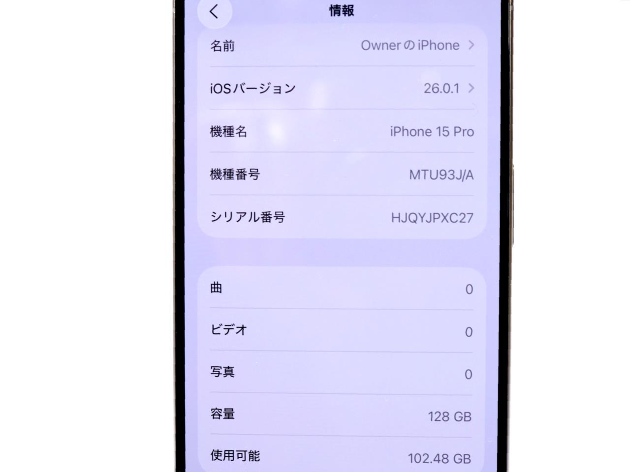 APPLE [USED]u059202 iPhone15 Pro 128GB SIMフリー [ナチュラルチタニウム] の 商品仕様1:
