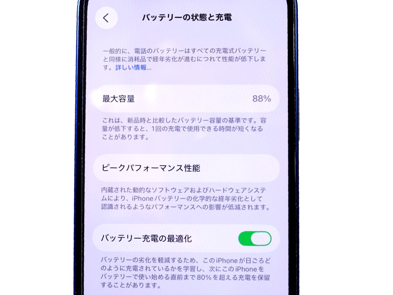 バッテリー最大容量表示=88%です。