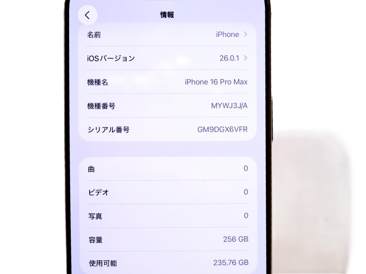 - [USED]u059206 iPhone16 Pro Max 256GB SIMフリー [デザートチタニウム]