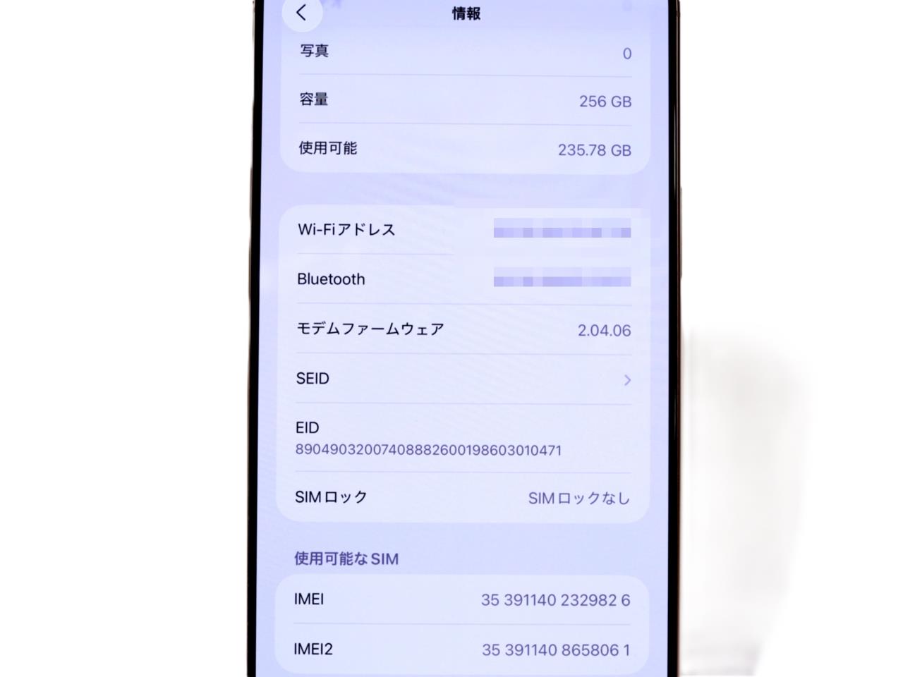 内蔵メモリ : 256GB