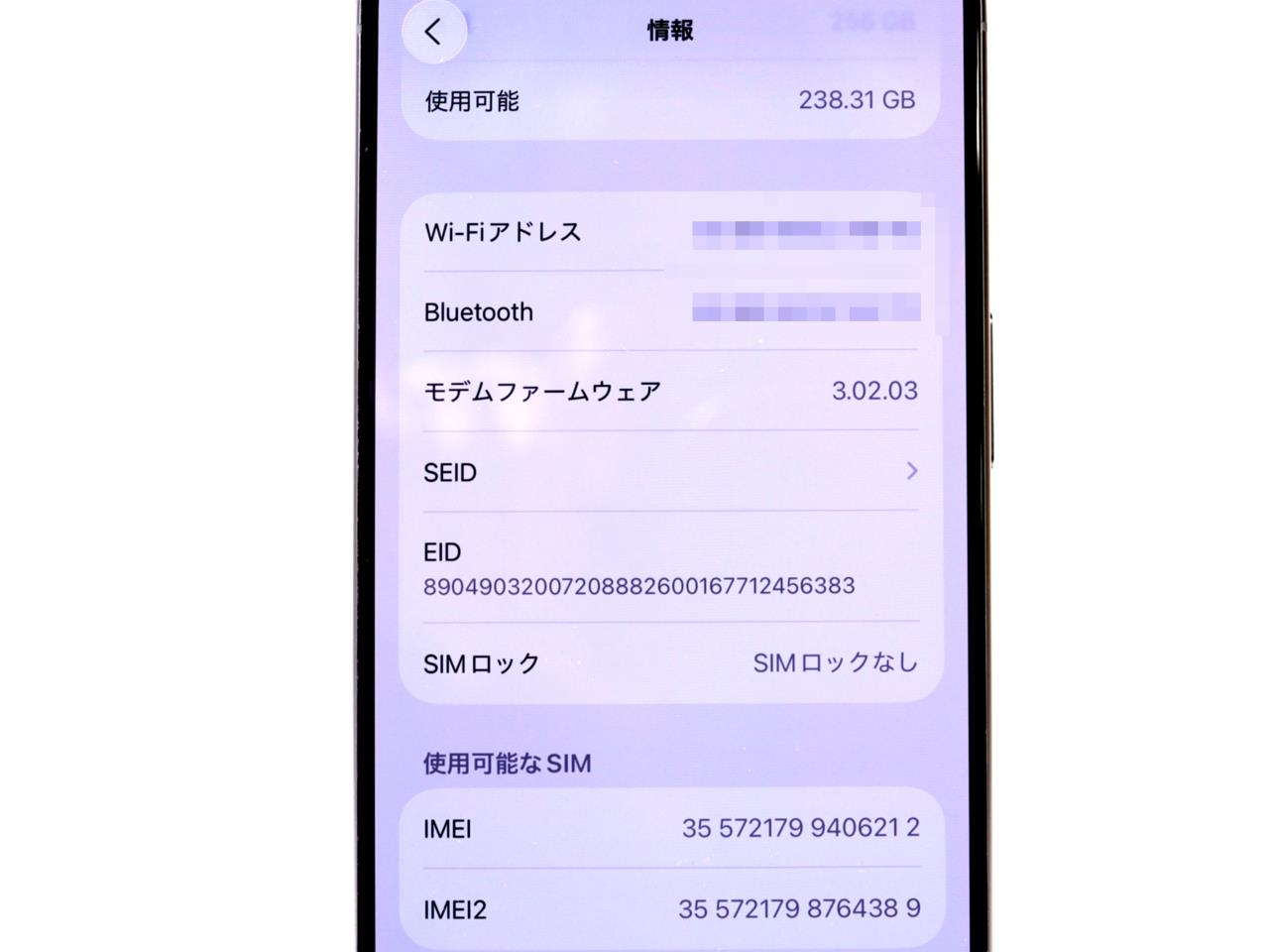 内蔵メモリ : 256GB