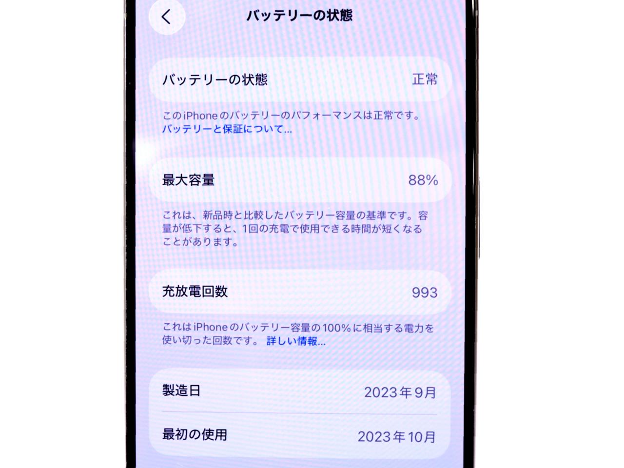 バッテリー最大容量表示=88%です。