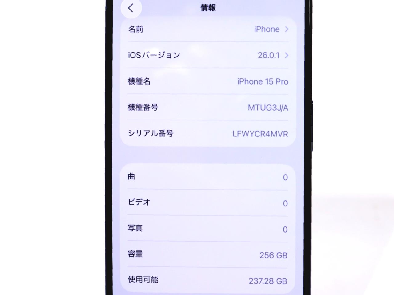 APPLE [USED]u059261 iPhone15 Pro 256GB SIMフリー [ブルーチタニウム] の 商品仕様1:
