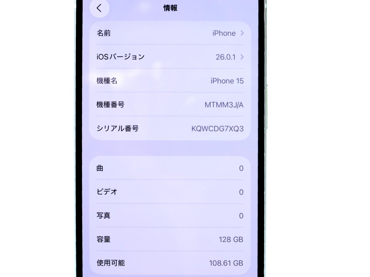 APPLE [USED]u059270 iPhone15 128GB SIMフリー [グリーン] の 商品仕様1: