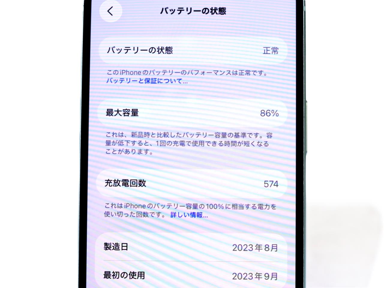バッテリー最大容量表示=86%です。
