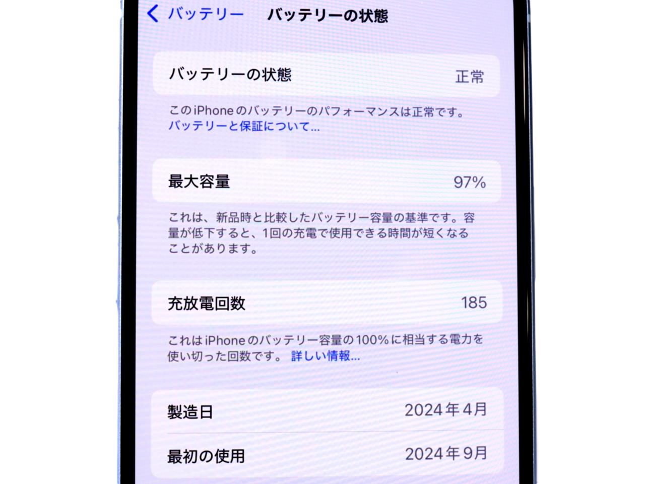 バッテリー最大容量表示=97%です。