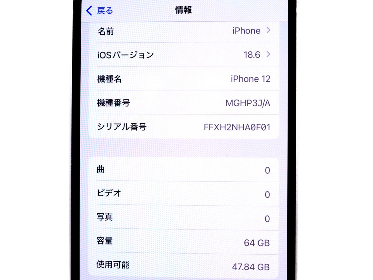 APPLE [USED]u059292 iPhone12 64GB SIMフリー [ホワイト] の 商品仕様1: