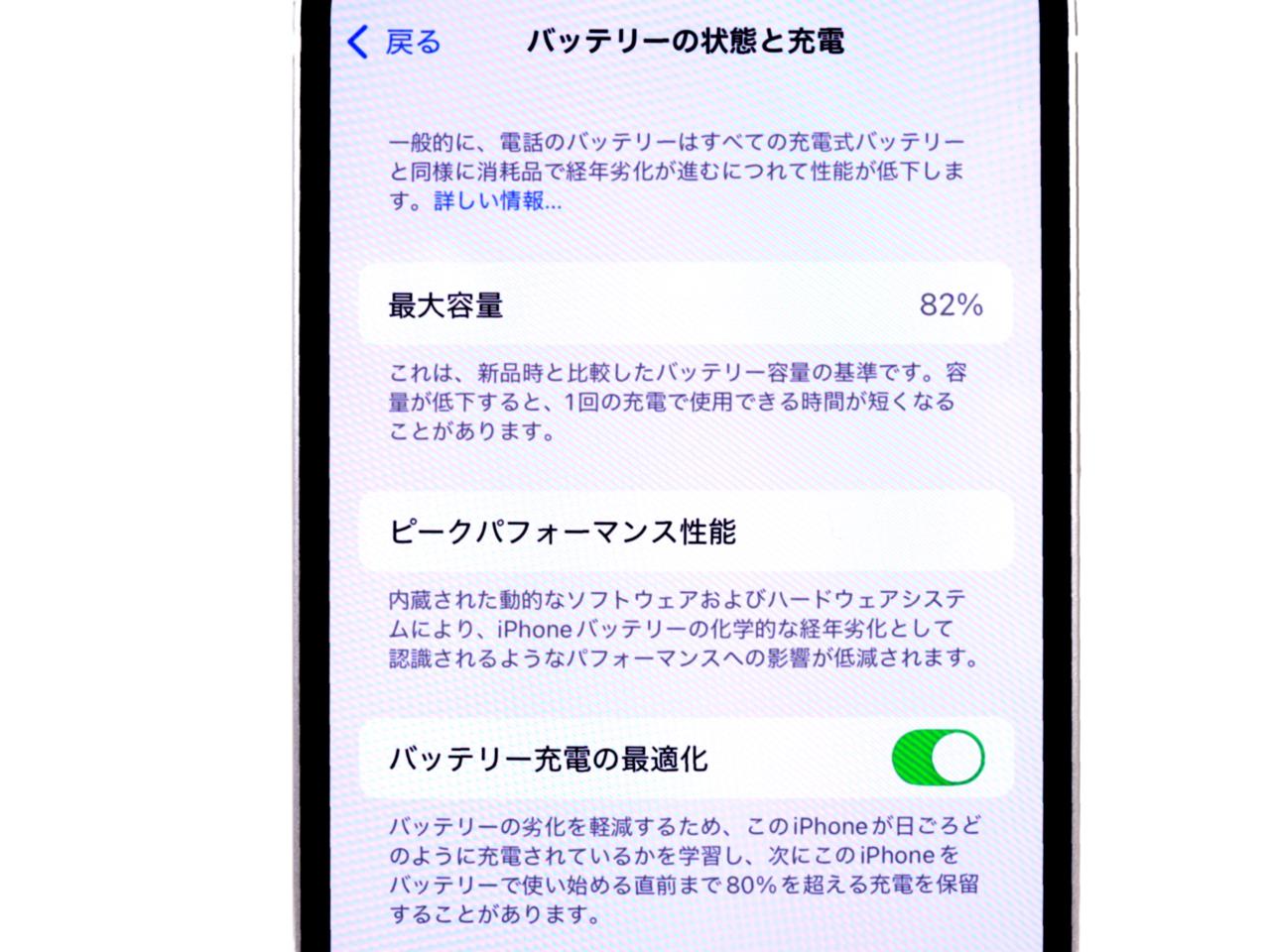 バッテリー最大容量表示=82%です。