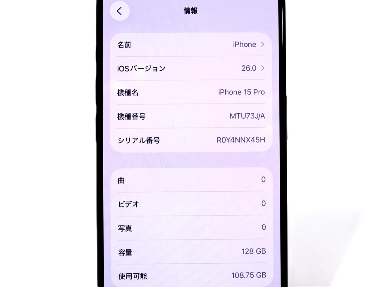 - [USED]u059301 iPhone15 Pro 128GB SIMフリー [ブラックチタニウム]