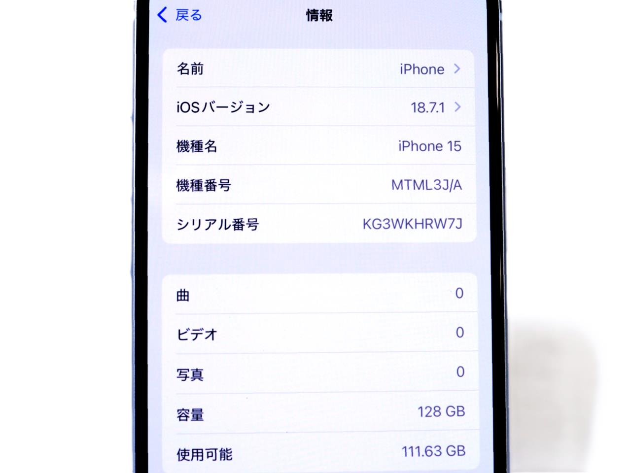 APPLE [USED]u059314 iPhone15 128GB SIMフリー [ブルー] の 商品仕様1: