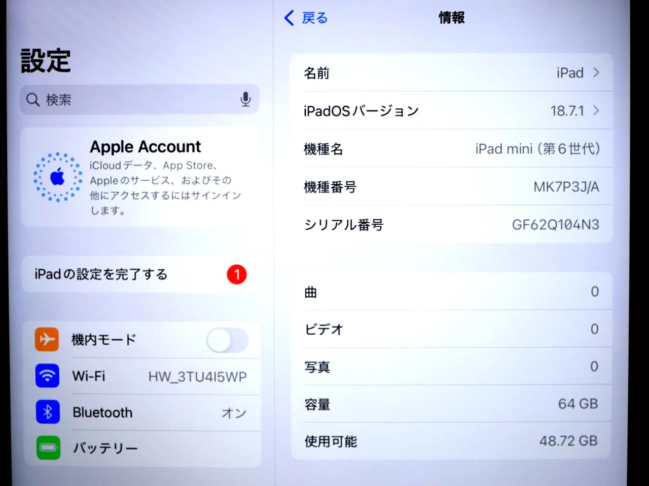 OS : iPadOS 18.7.1