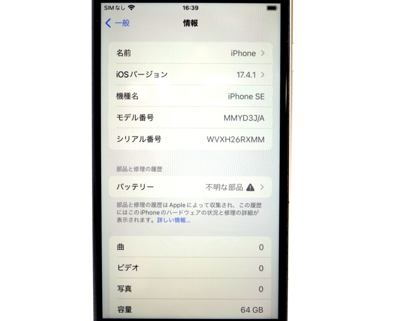 APPLE [USED]u059342 iPhoneSE 3rd 64GB SIMフリー [スターライト] の 商品仕様1: