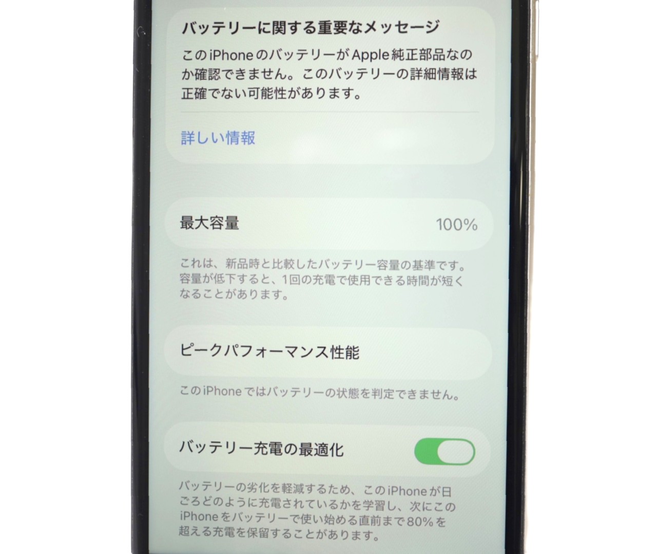 バッテリー最大容量=100%です。(バッテリーは社外品です)