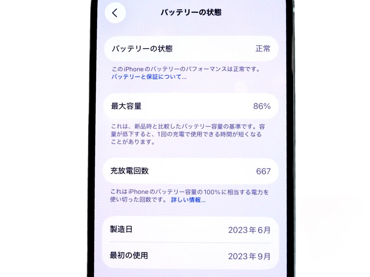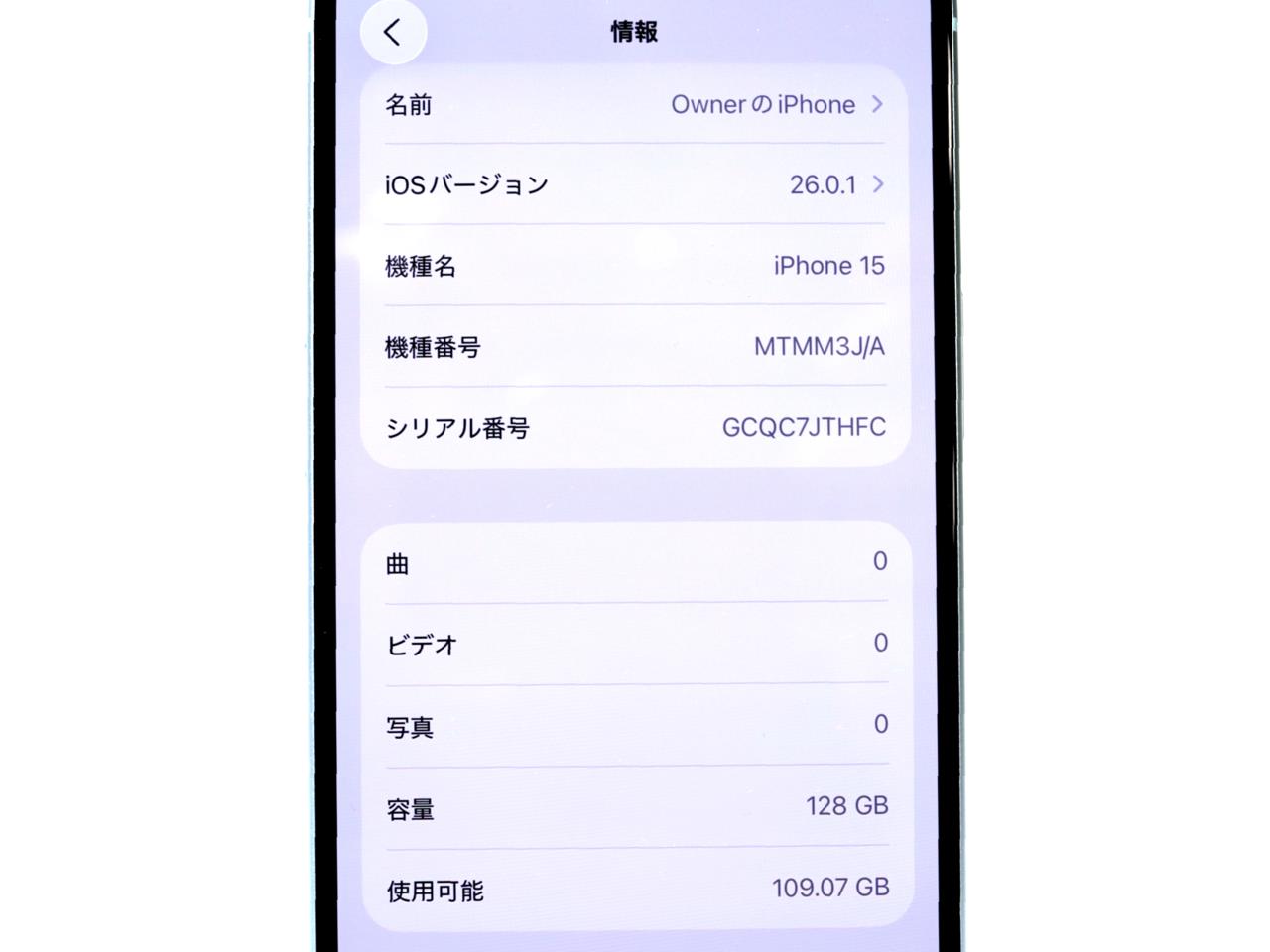 APPLE [USED]u059355 iPhone15 128GB SIMフリー [グリーン] の 商品仕様1:
