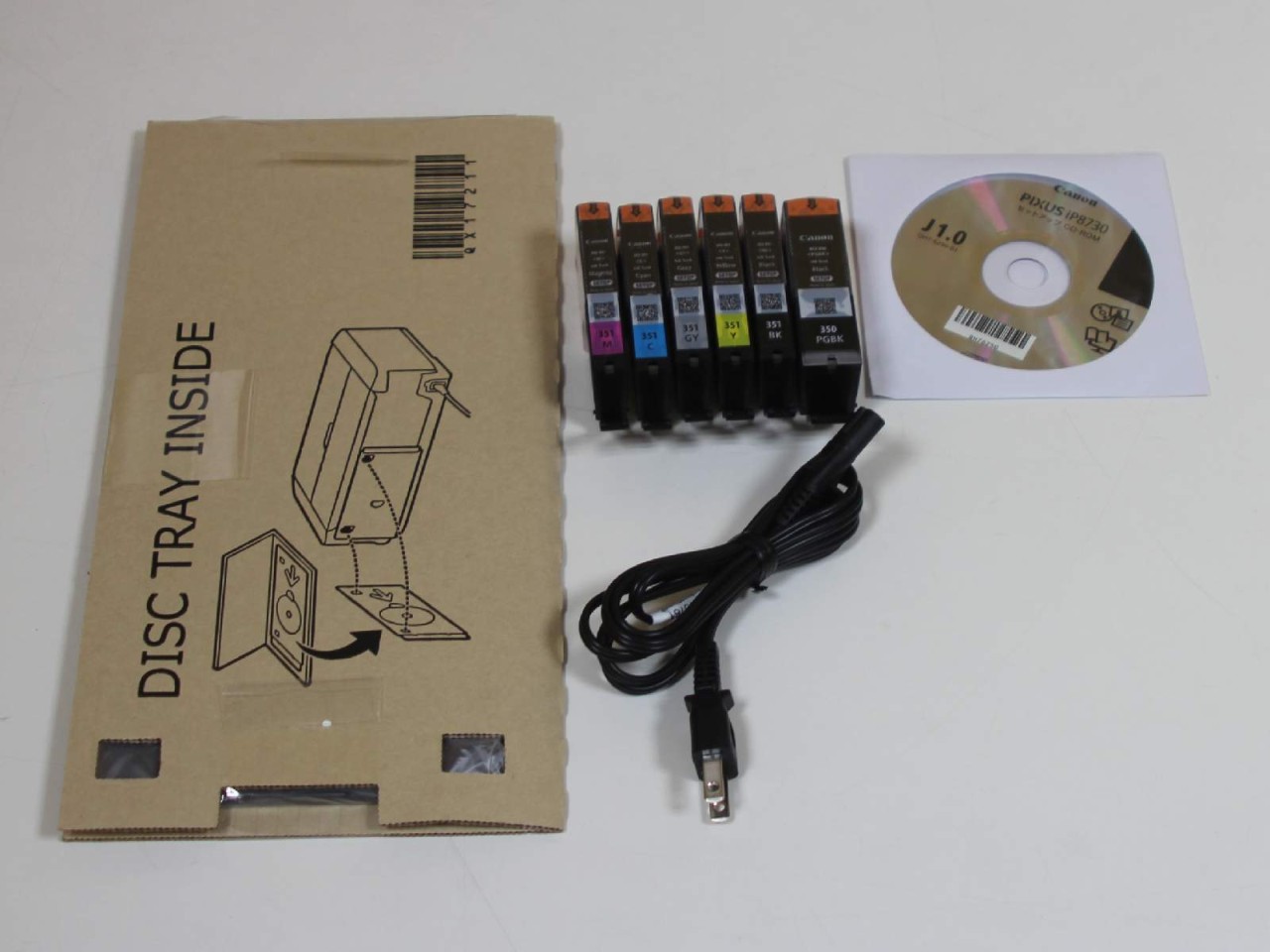 付属品 : セットアップ用インクタンク(BCI-351C/351M/351Y/351BK/351GY/350PGBK)/セットアップCD-ROM/スタートガイド/ディスクトレイ