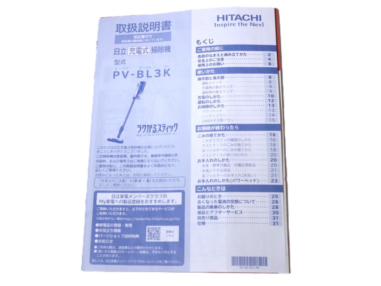 HITACHI [中古]掃除機・クリーナー ラクかるスティック PV-BL3K(N) [ライトゴールド]