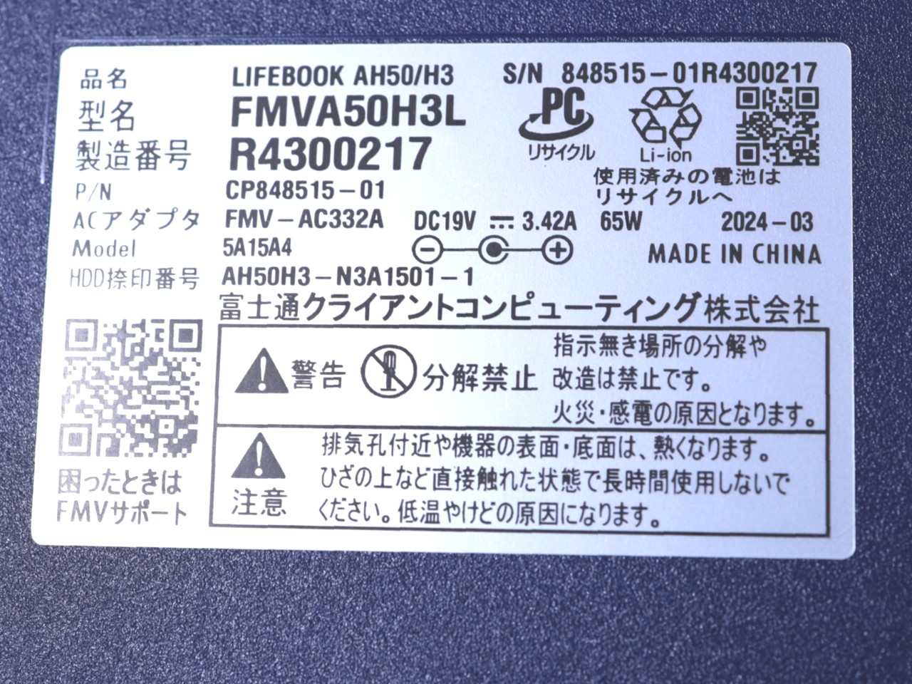 FUJITSU [USED]u059433 FMVA50H3L の 商品仕様1: