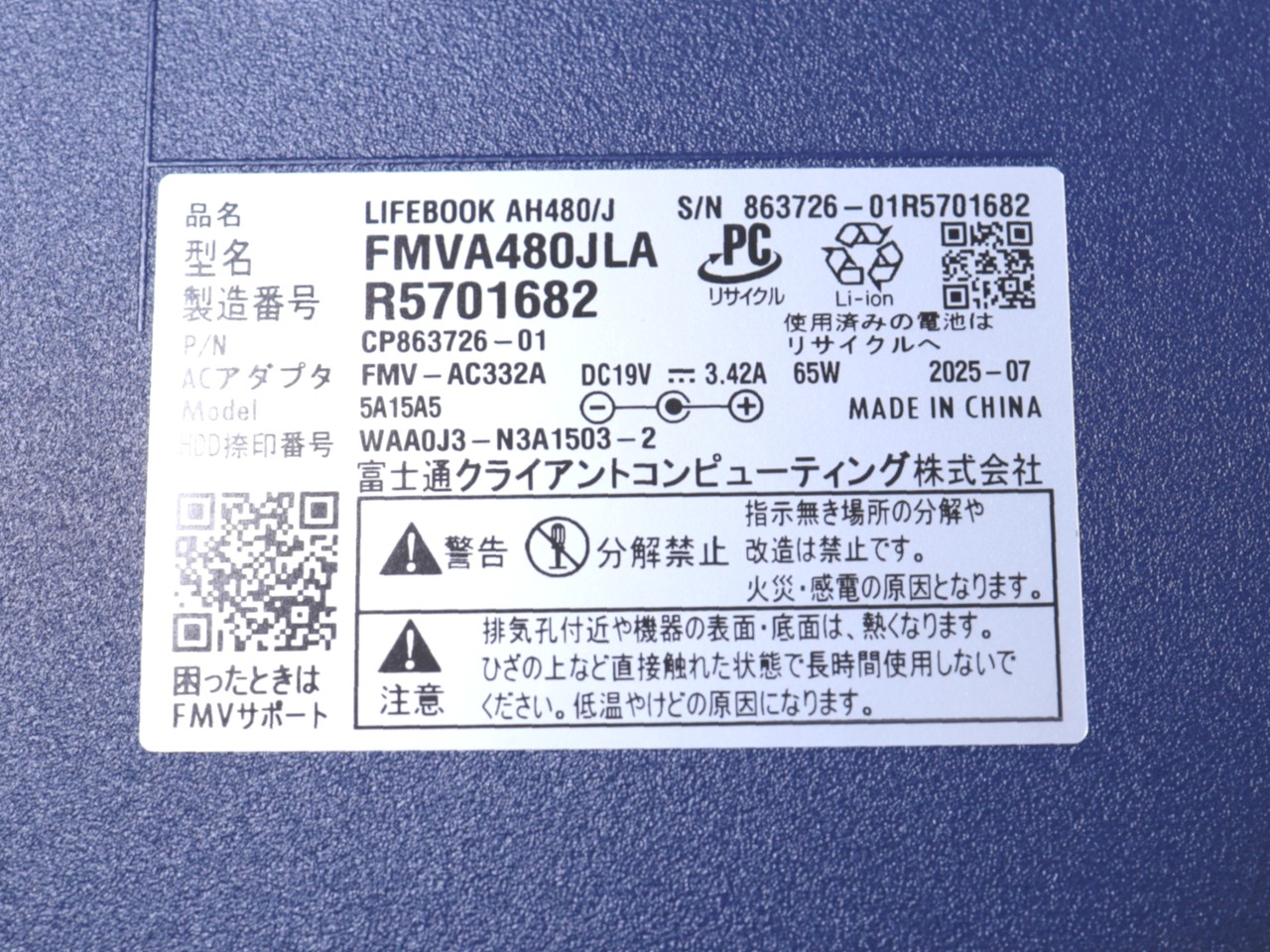 FUJITSU [USED]u059434 FMVA480JLA の 商品仕様1: