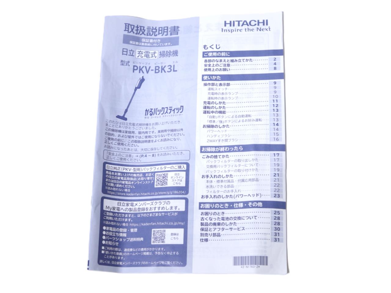 HITACHI [中古]掃除機・クリーナー かるパックスティック PKV-BK3L(V) [ラベンダー]