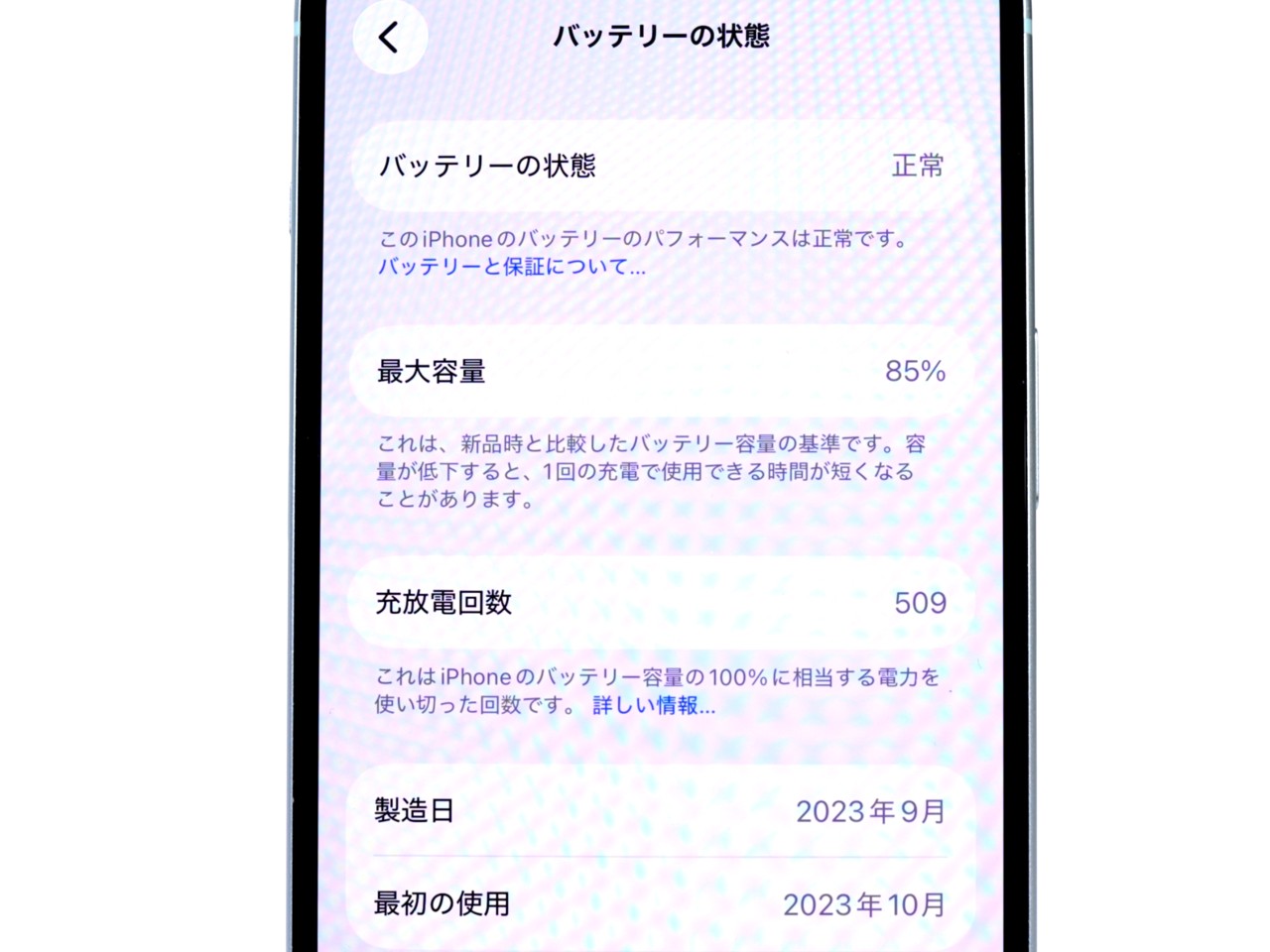 APPLE [USED]u059466 iPhone15 128GB SIMフリー [グリーン] の 商品仕様1: