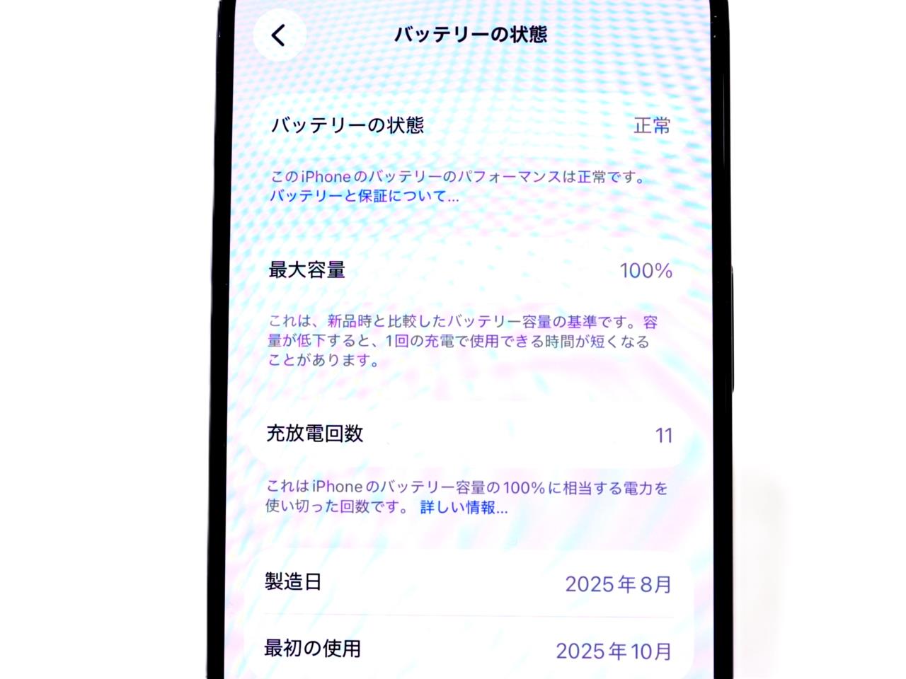 バッテリー最大容量表示=100%です。