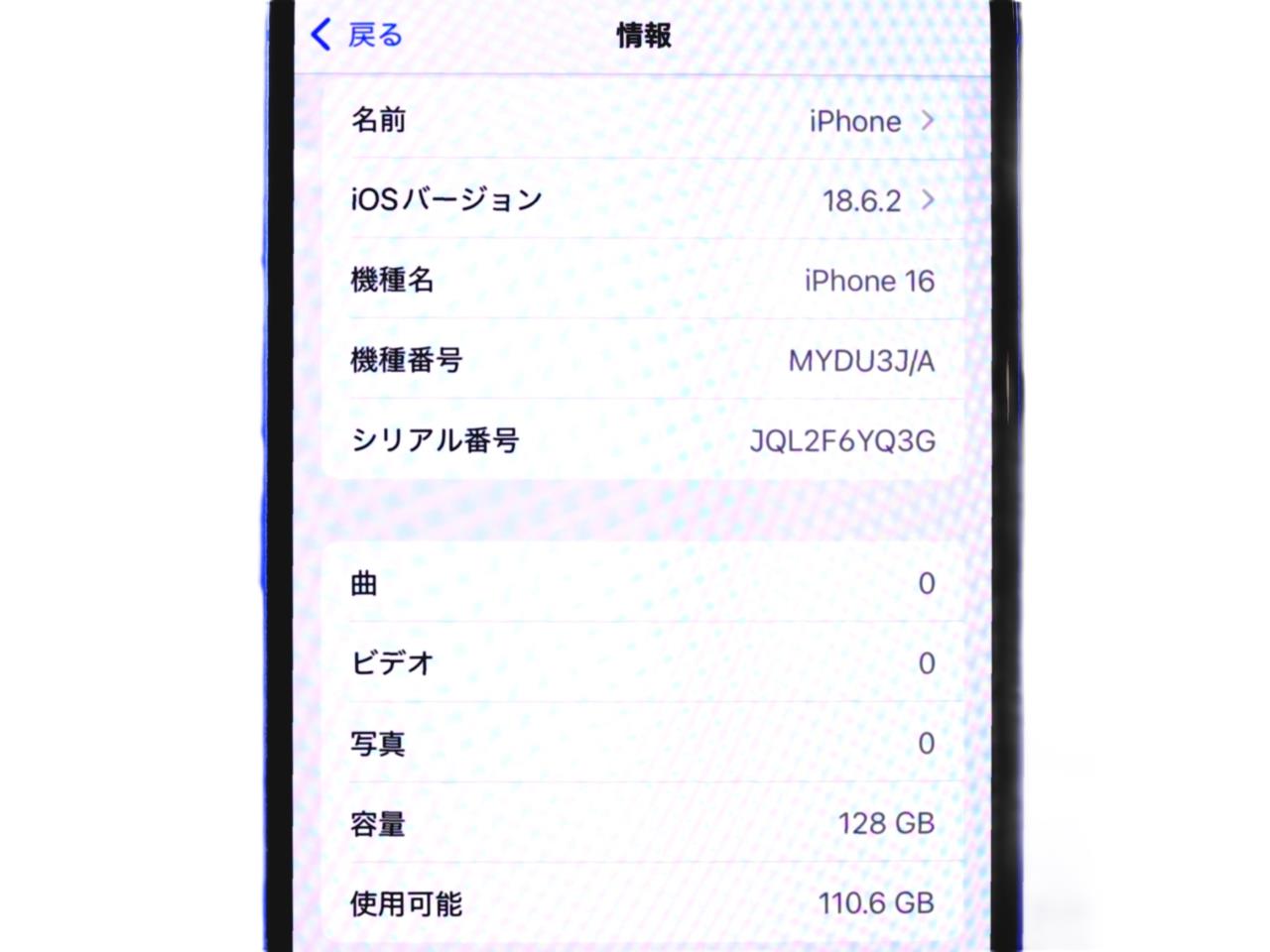 APPLE [USED]u059475 iPhone16 128GB SIMフリー [ウルトラマリン] の 商品仕様1: