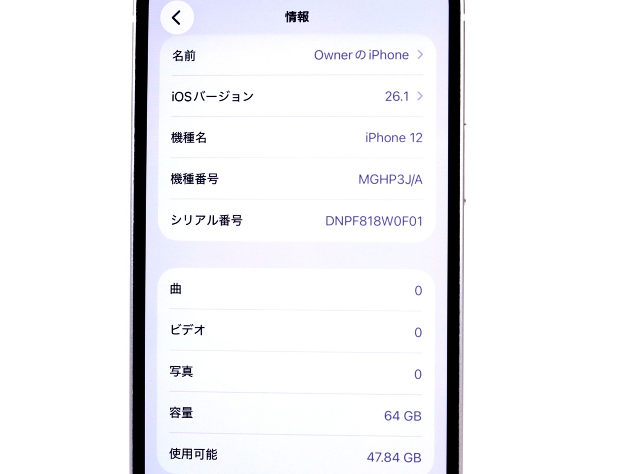 APPLE [USED]u059502 iPhone12 64GB SIMフリー [ホワイト] の 商品仕様1: