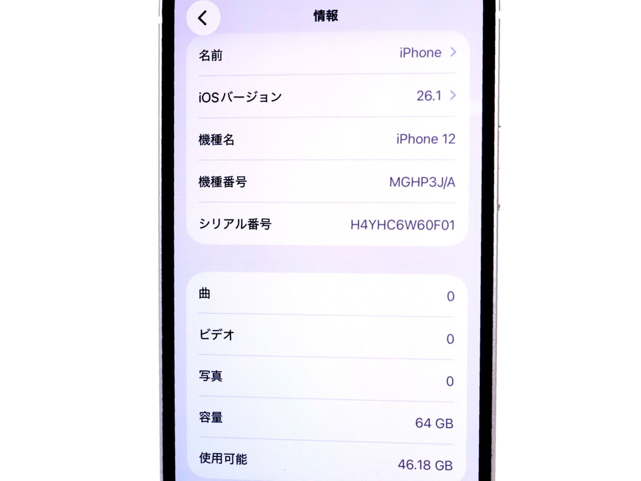 APPLE [USED]u059507 iPhone12 64GB SIMフリー [ホワイト] の 商品仕様1:
