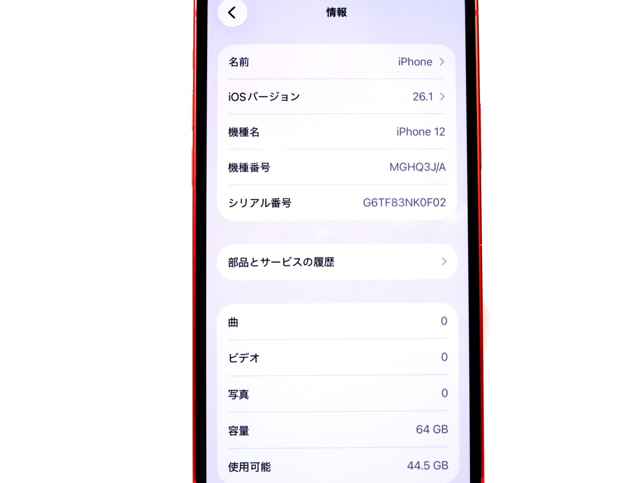 APPLE [USED]u059528 iPhone12 (PRODUCT)RED 64GB SIMフリー [レッド] 修理品 の 商品仕様1: