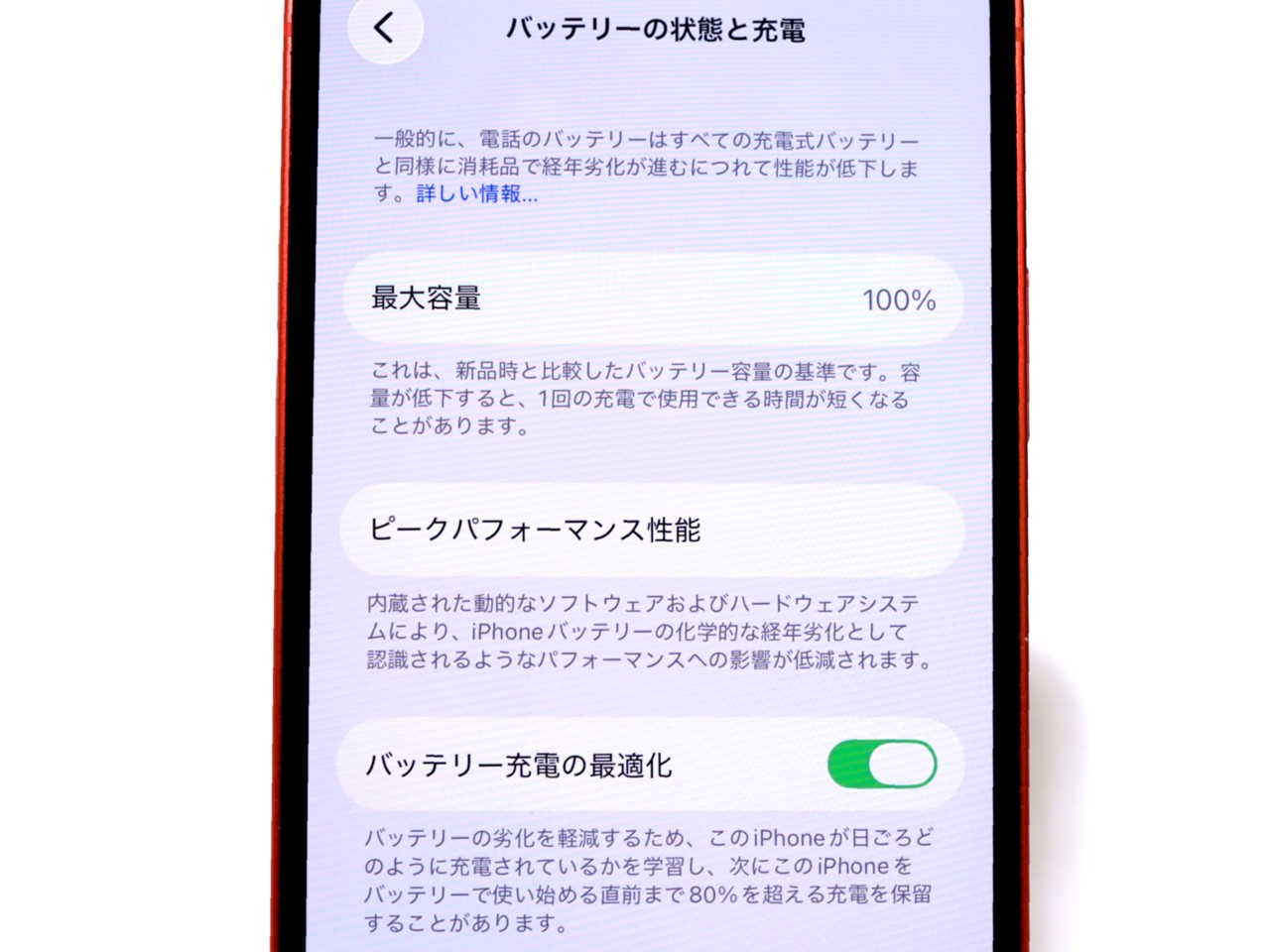 バッテリー最大容量=100%です。(バッテリー交換済)