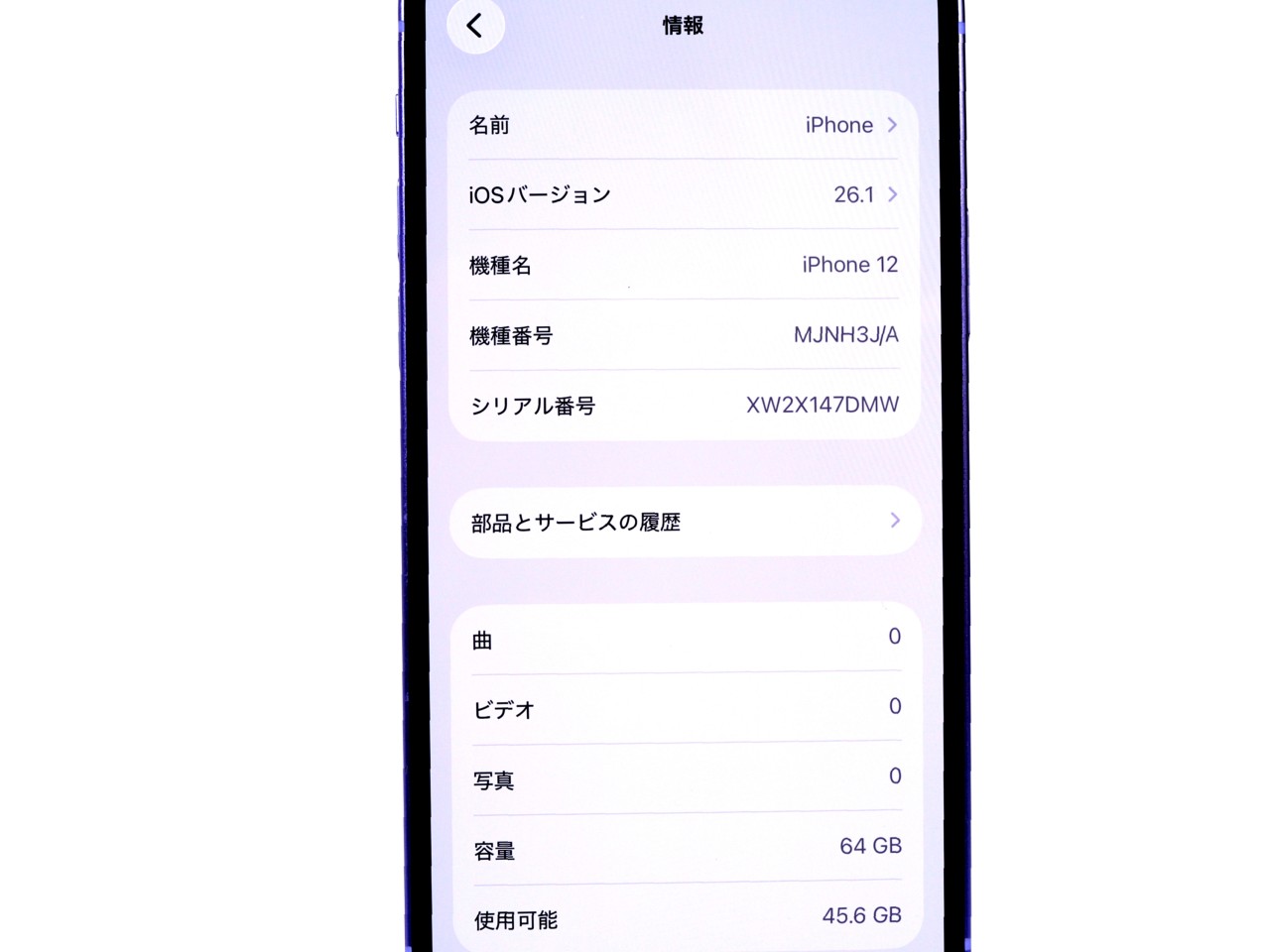 APPLE [USED]u059529 iPhone12 64GB SIMフリー [パープル] 修理品 の 商品仕様1:
