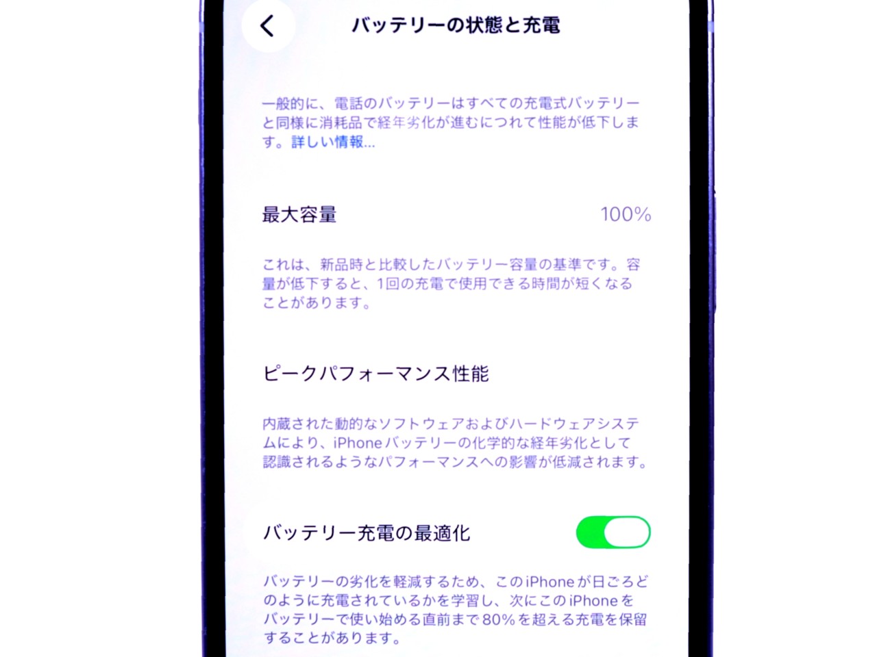 バッテリー最大容量=100%です。(バッテリー交換済)