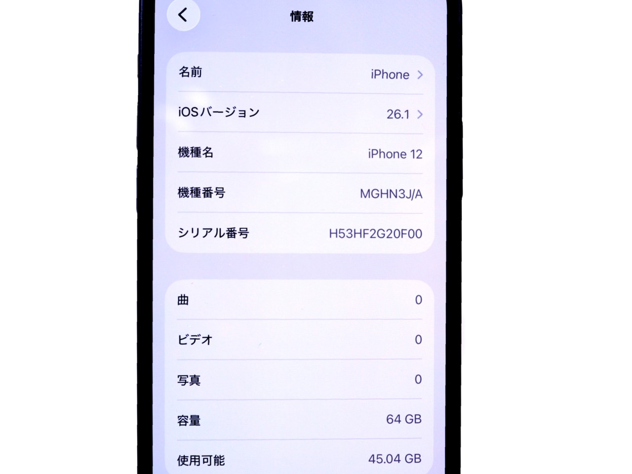 APPLE [USED]u059530 iPhone12 64GB SIMフリー [ブラック] 修理品 の 商品仕様1: