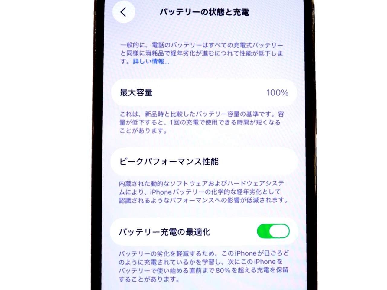 バッテリー最大容量=100%です。(バッテリー交換済)