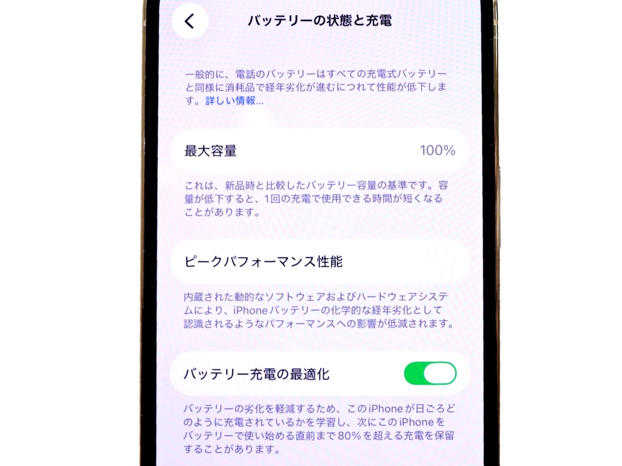 バッテリー最大容量=100%です。(バッテリー交換済)