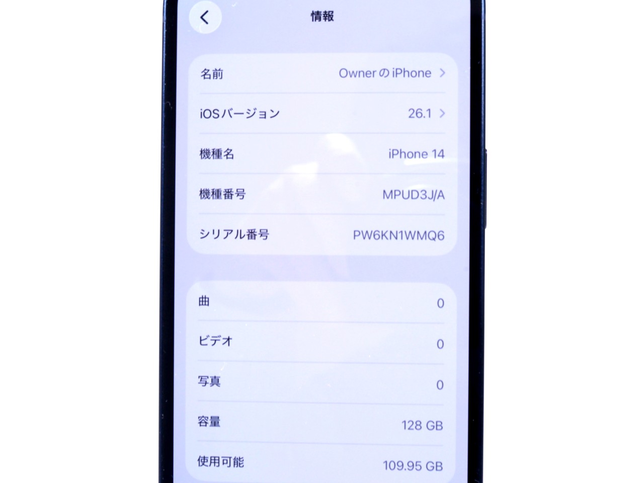 APPLE [USED]u059560 iPhone14 128GB SIMフリー [ミッドナイト] の 商品仕様1: